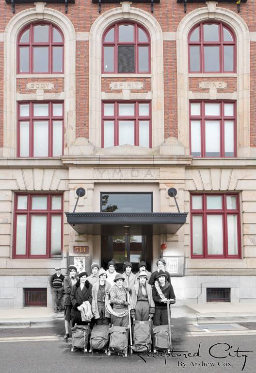 This 1926 portrait could be a photo shoot for a Ralph Lauren ad instead of the YMCA Girls Outing Club gearing up for a trip to Paradise. Taken in front of the main YMCA Building on Market Street, completed in 1910, the young women in the photo echo the spirit of Fay Fuller, the first woman to reach the summit of Mt. Tacoma on August 10, 1890. Fay made her pioneering climb with her face unfashionably blackened with charcoal and wearing crystal goggles against a fierce summer sun glare. She wore heavy flannel underwear, a thick blue flannel bloomer suit and long skirt, woolen hose, calfskin boy’s boots with caulks, a straw hat and an alpenstock. Climbing with four others including Leonard Longmire, the party reached the summit at Columbia Crest late on the first day of climbing from Camp Muir at 10,000 feet. They spent the night in a sulfur vent ice cave where Faye remembered sleeping quite well except for the occasional roaring of avalanches. The next day they made the descent in gale force winds and then camped at Paradise for five days nursing sunburns and sore feet. Seven years later, when she was 28 years old, Faye made the climb a second time and then went on to a career as a journalist and writer. She was 89 when she died in 1958 after proving that determination is the essence of style.