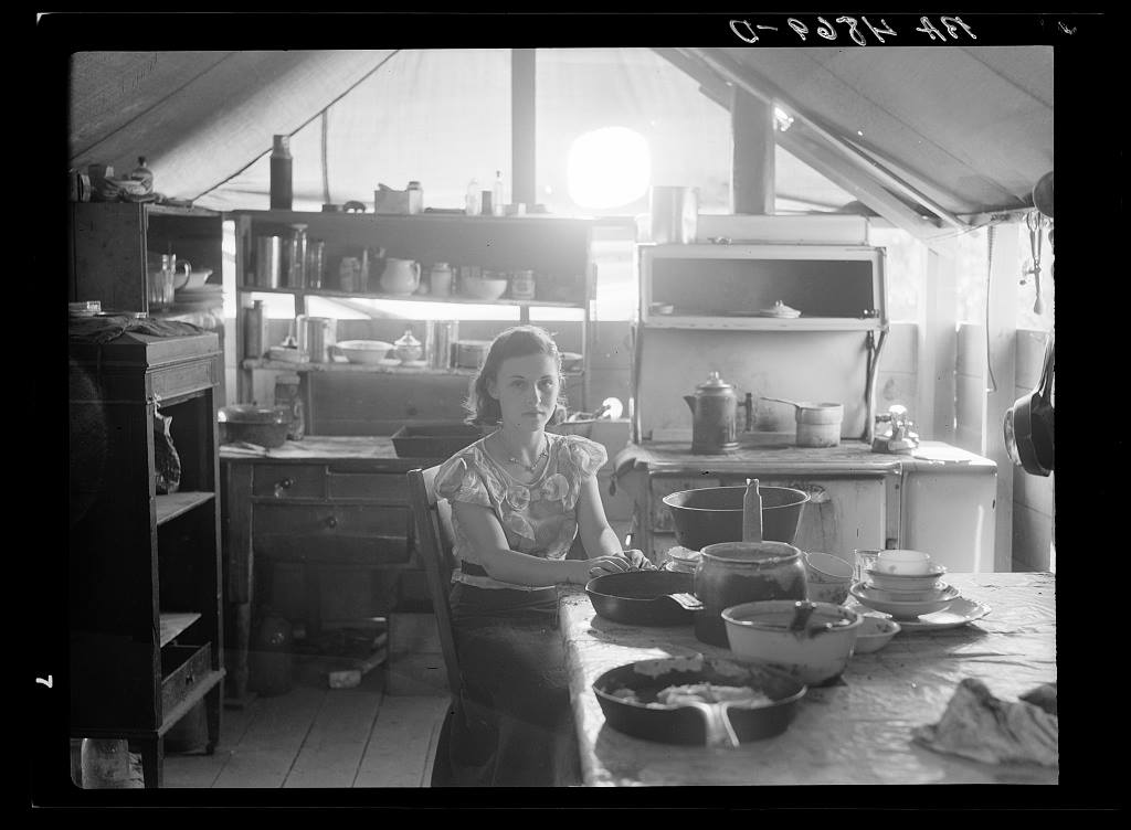 Take a moment to look into the face of this beautiful young woman, poised in the soft light that washes the inside of the tent that is her home. She has migrated to the Yakima valley with her family, where the long harvest season of 1936 provides a meager means of support picking fruit and a glimmer of hope for a better future. She is surrounded by a simple open air kitchen and the most basic of utilitarian possessions , probably everything she and her family own . But there is no defeat or embarrassment in her gaze. She will make the future we live in here today in Washington State.