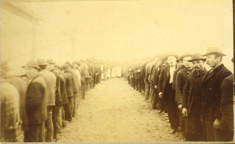 The photographer Asahel Curtis collected this image taken near 3rd and Union just after the June 1889 Seattle fire. The Tacoma Relief Bureau set up an emergency kitchen and served soup lines in the wake of the devastating fire. 1889 was a cursed year for summer fires with Spokane, Ellensburg and Bellingham all losing sections of their downtowns to flames. Tacoma was lucky with no fire at home but sent aid to the ravaged Northwest cities over the Northern Pacific railroad lines. In those days it was a railroad hub and a perfect place from which to launch relief efforts. That November Washington became the 42nd State.