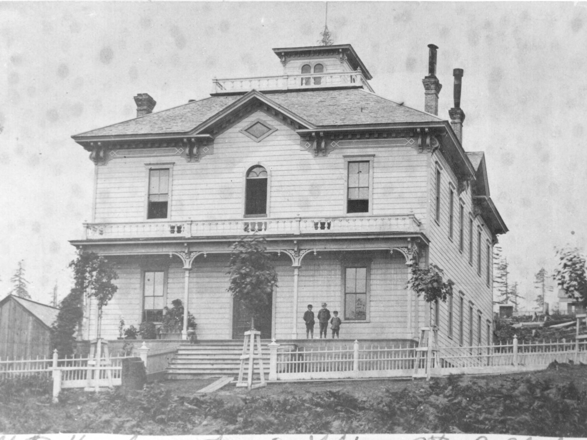 Between July and December of 1873, the NP raced to finish the rail laying of the Prairie Line to tidewater. They were also racing General_Photograph_Collection_KERLEE01to survey and sell city lots in the new terminus city since the federal land grants made to the railroad represented its only real liquid wealth. The follow year, in the fall of 1874, the NP started building a highly stylized, Victorian headquarters that was part office building and part mansion. It stood in stark contrast to it’s surroundings when it was completed in early 1875 by the superintendent of construction Theodore Hosmer.  Hosmer was also the NP’s Special Agent in charge of city planning and land sales (and the brother in law of Charles B. Wright, chairman of the railroad’s Board of Directors).