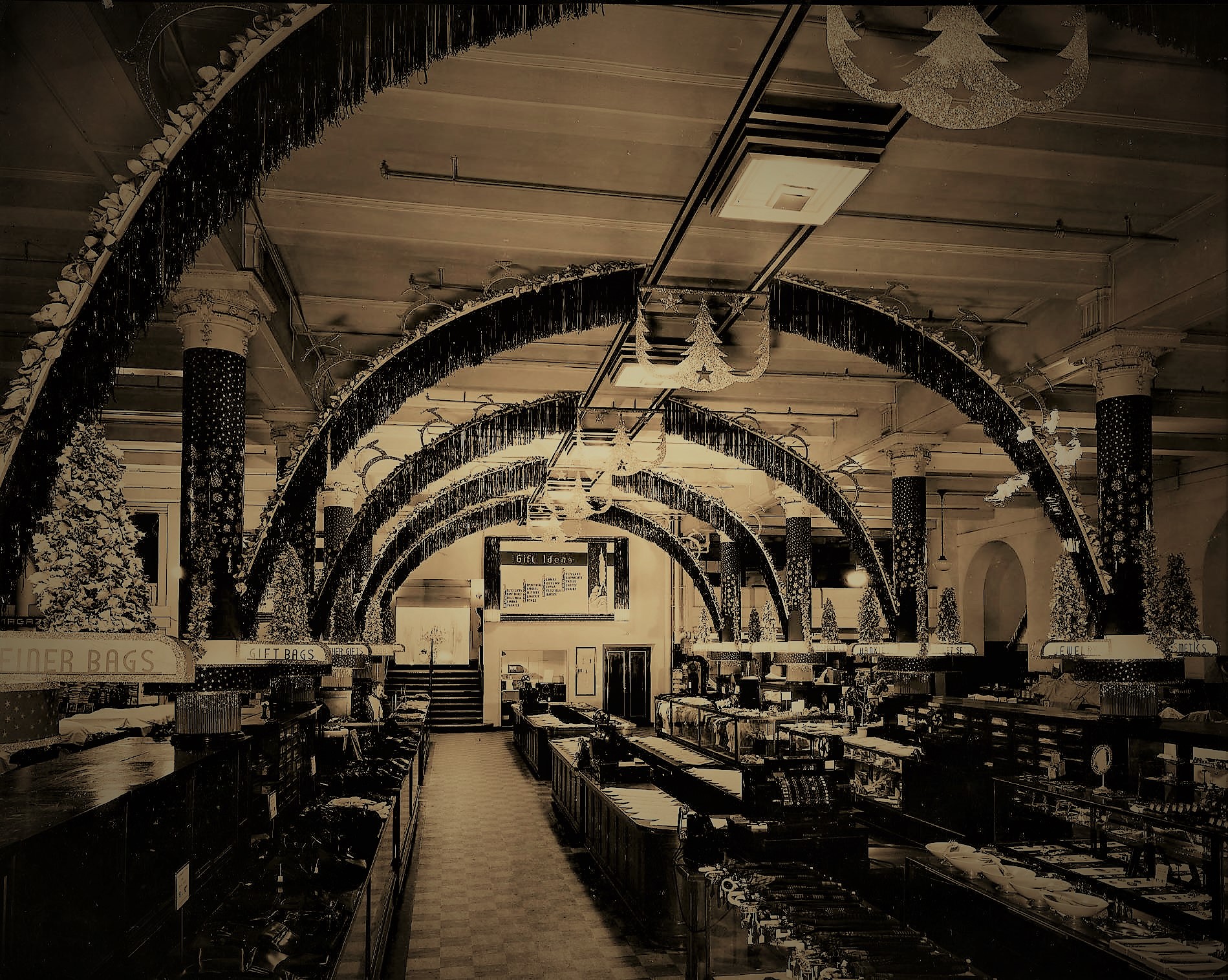 Main floor Christmas decorations, Rhodes Department Store ca. 1937