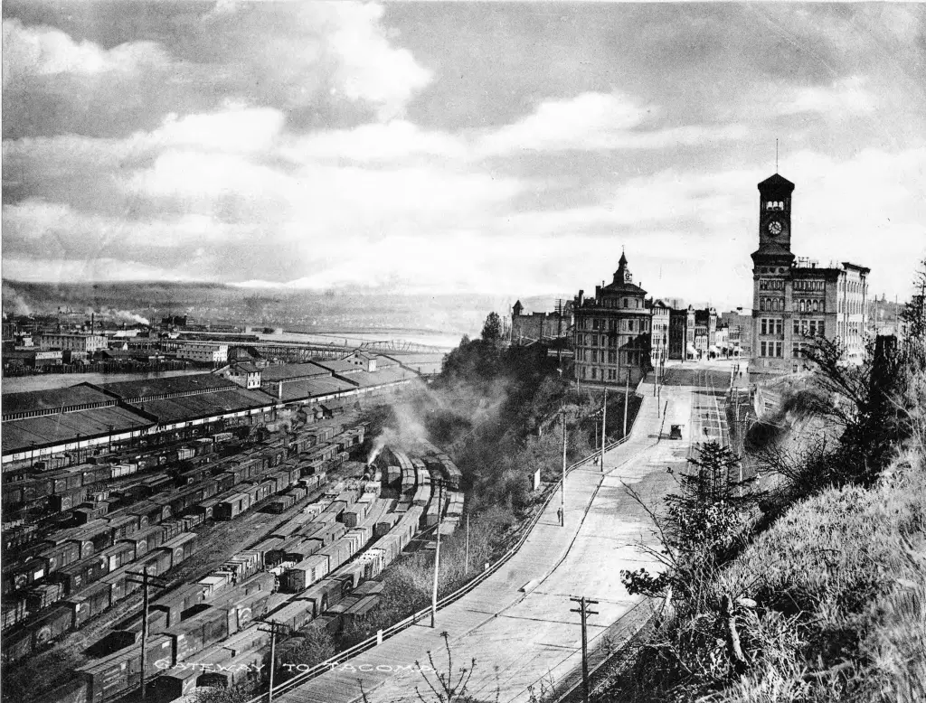 Tacoma was an important shipping port for grain and lumber at the turn of the 20th century and a familiar destination for the last vessels of the Pacific sailing fleet. As steamships took over passenger service and more valuable, perishable cargos, the big sailing ships hung on carrying bulk loads like lumber, coal and grain. Tacoma’s waterfront at the end of the transcontinental railroad, where the rails met sails, was a familiar loading call for the great tall ships and their worldly crews.